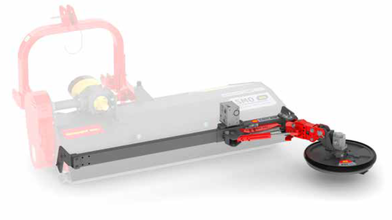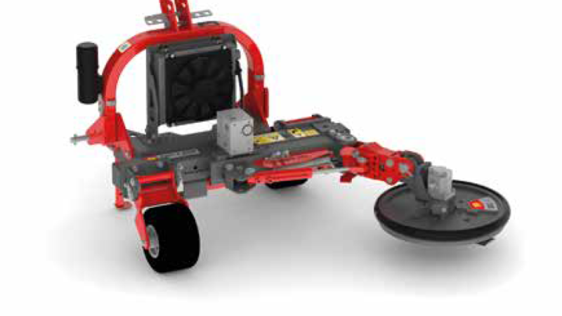The XSC Rotary Mower for inter-row mowing can be mounted via 2-FAST to the mulcher or to the PORT-X accessory carrier.
