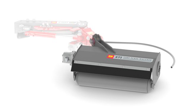 The XTI Tiny Flail Mower and XPN weed comb for inter-row mowing can be mounted via 2-FAST to the mulcher or to the PORT-X accessory carrier.