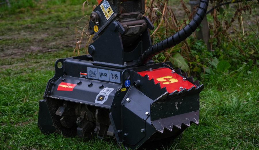 - Mulcher to fit the end of an excavator dipper arm