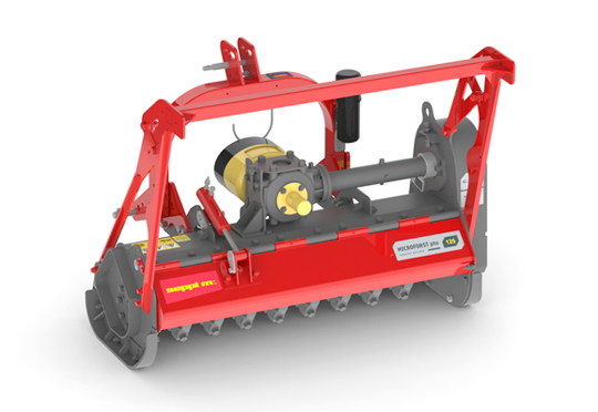 Compact and manoeuvrable forestry mulcher for small tractors, mulches material up to 13cm.