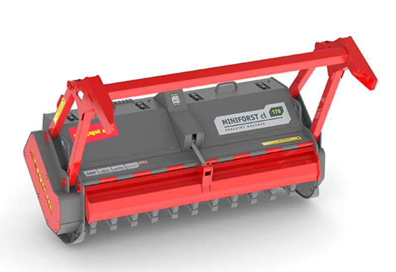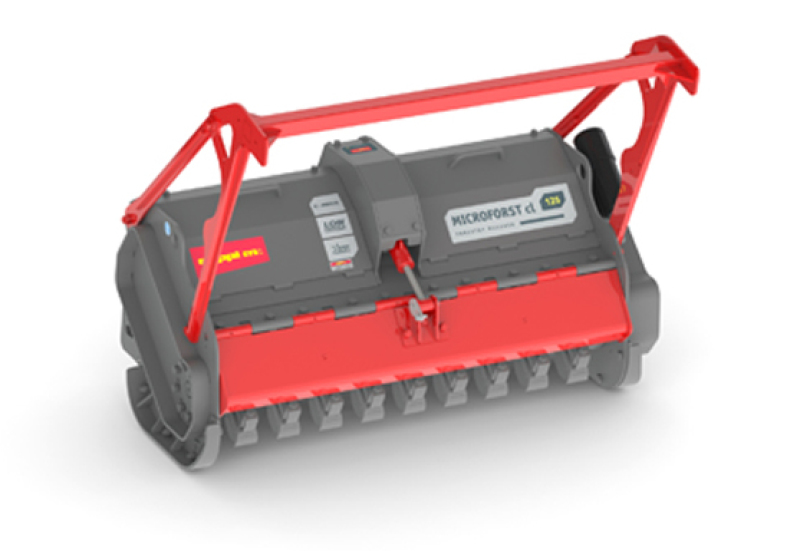 Compact forestry mounted mulcher for standard flow Compact Loaders. Will mulch material up to 13cm diameter.
