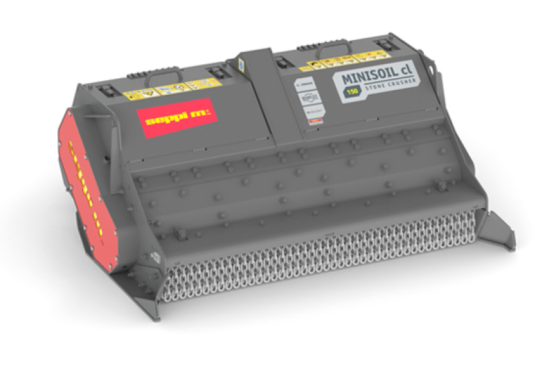 Stonecrusher and Forestry Tiller for compact loaders. Crushes stone up to 15cm and wood up to 20cm diameter.