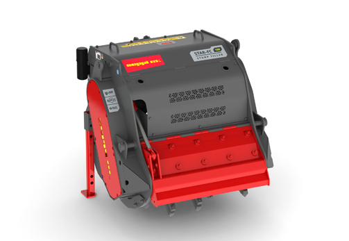 Versatile forestry tiller for excavators - for stumps, roots and stones. Can work at a depth of 30cm.